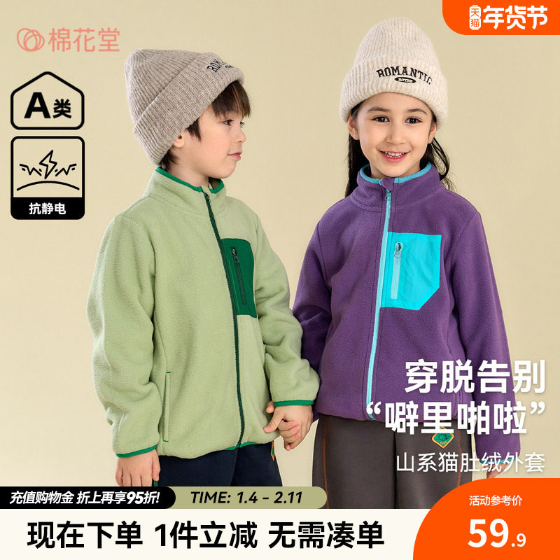 戴维贝拉儿童摇粒绒外套男童新款抗静电上衣2026女童中大童秋装