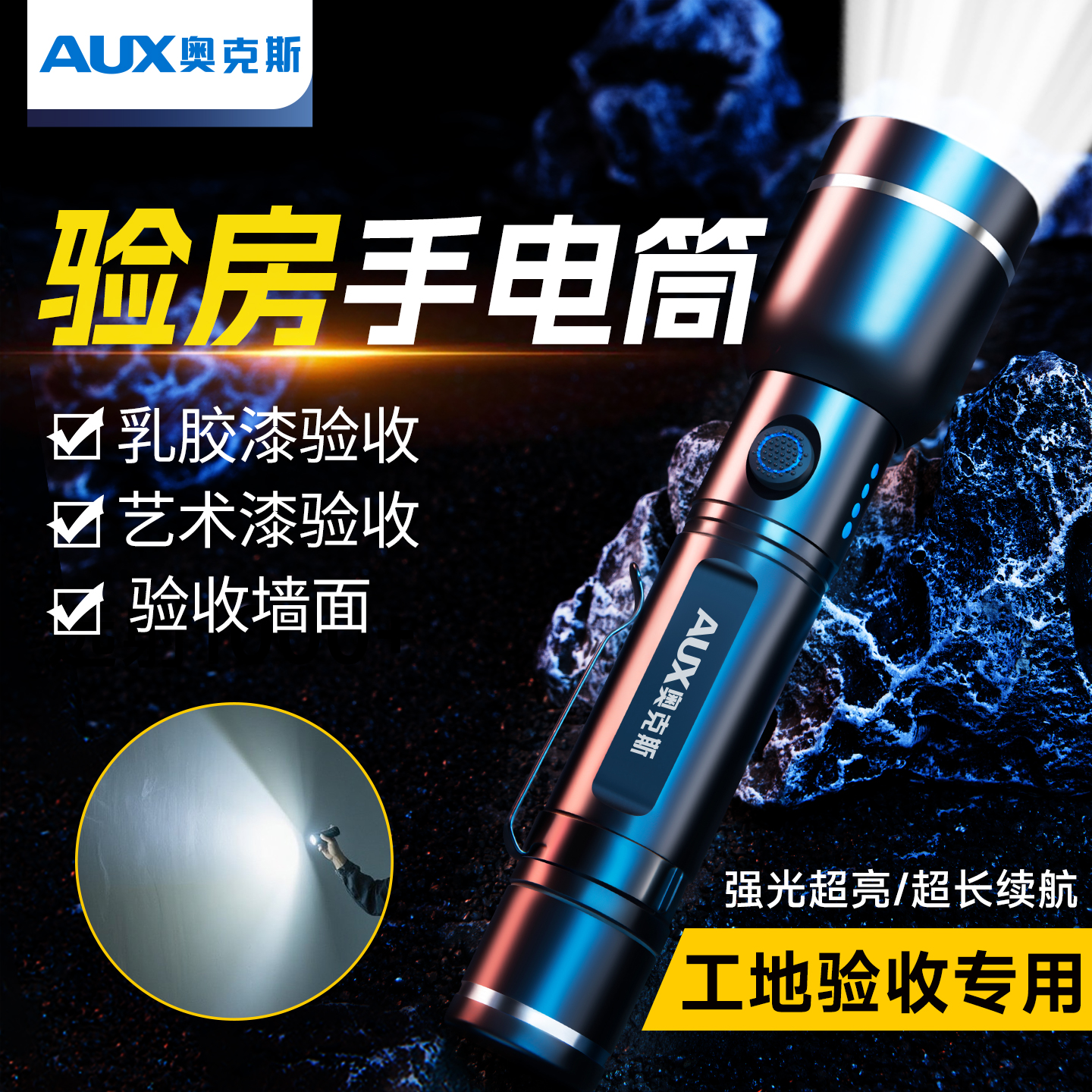 奥克斯强光手电筒验房检查墙面验光灯工地验收油漆腻子平整充电灯