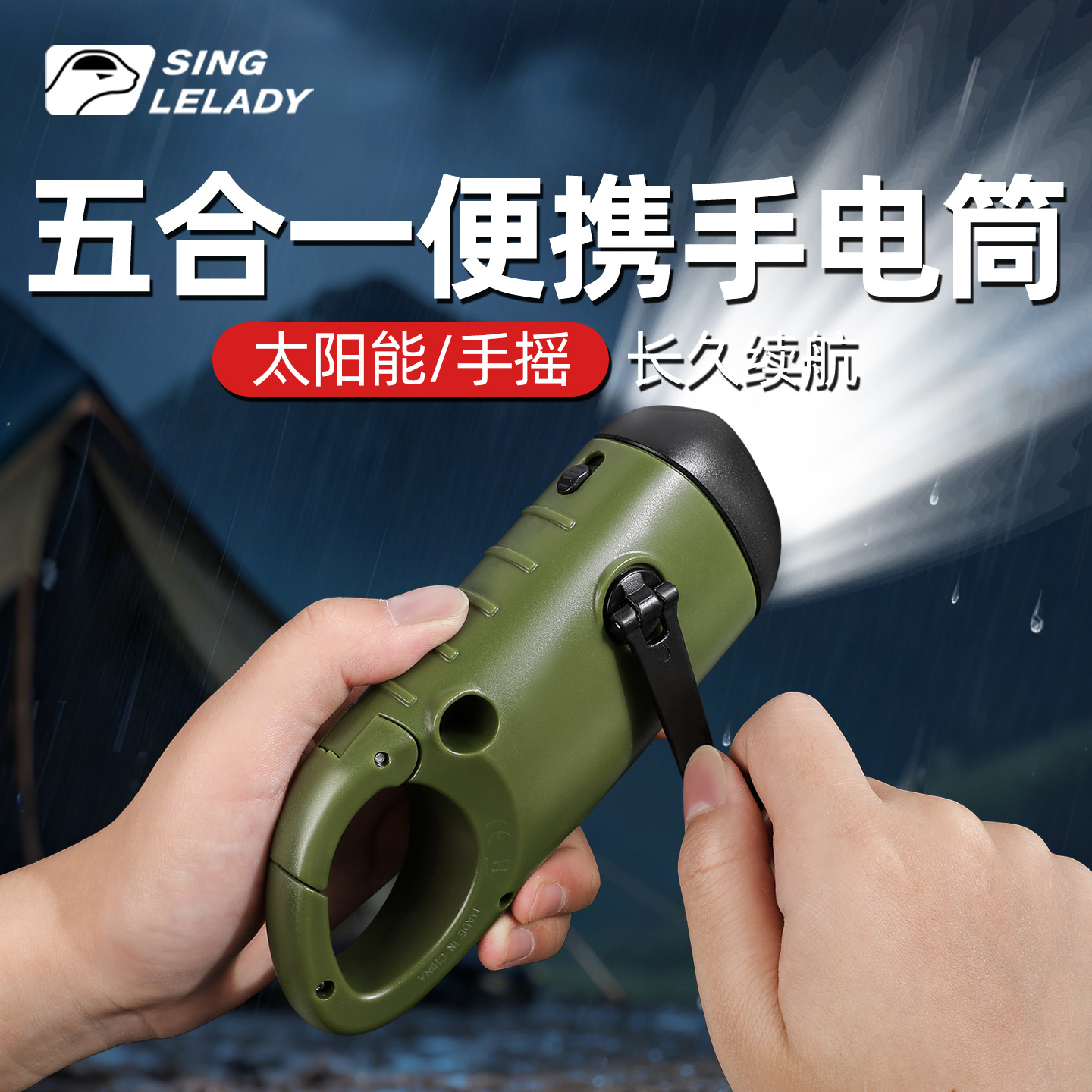 手电筒充电手摇太阳能强光便携超亮家用小型手灯多功能旅游手电灯