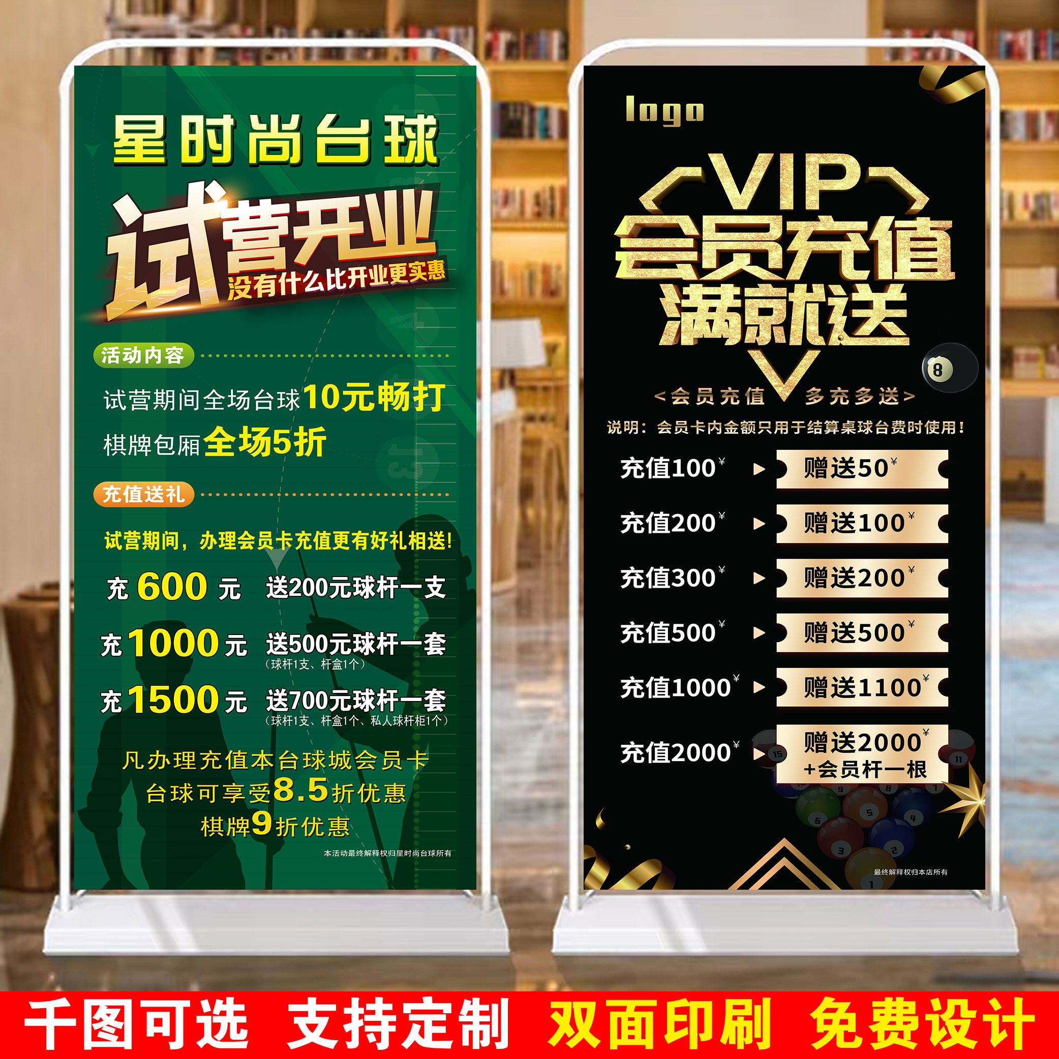 台球俱乐部广告装饰挂画会员充值促销活动海报定制x注水门型展架