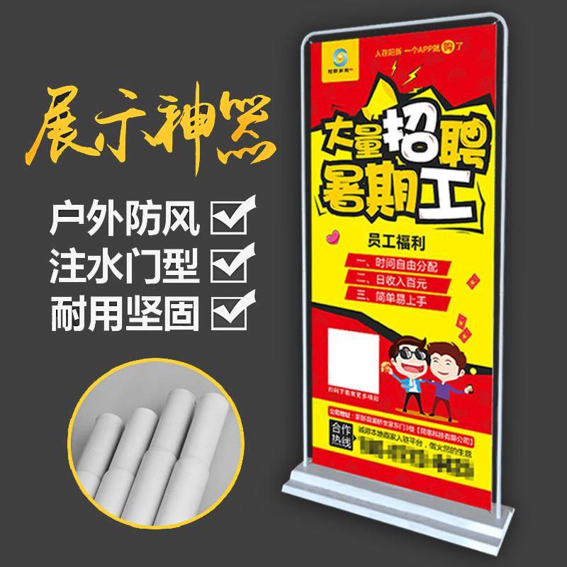 注水门型展架80x180招聘海报架户外防风广告牌展示架子易拉宝制作