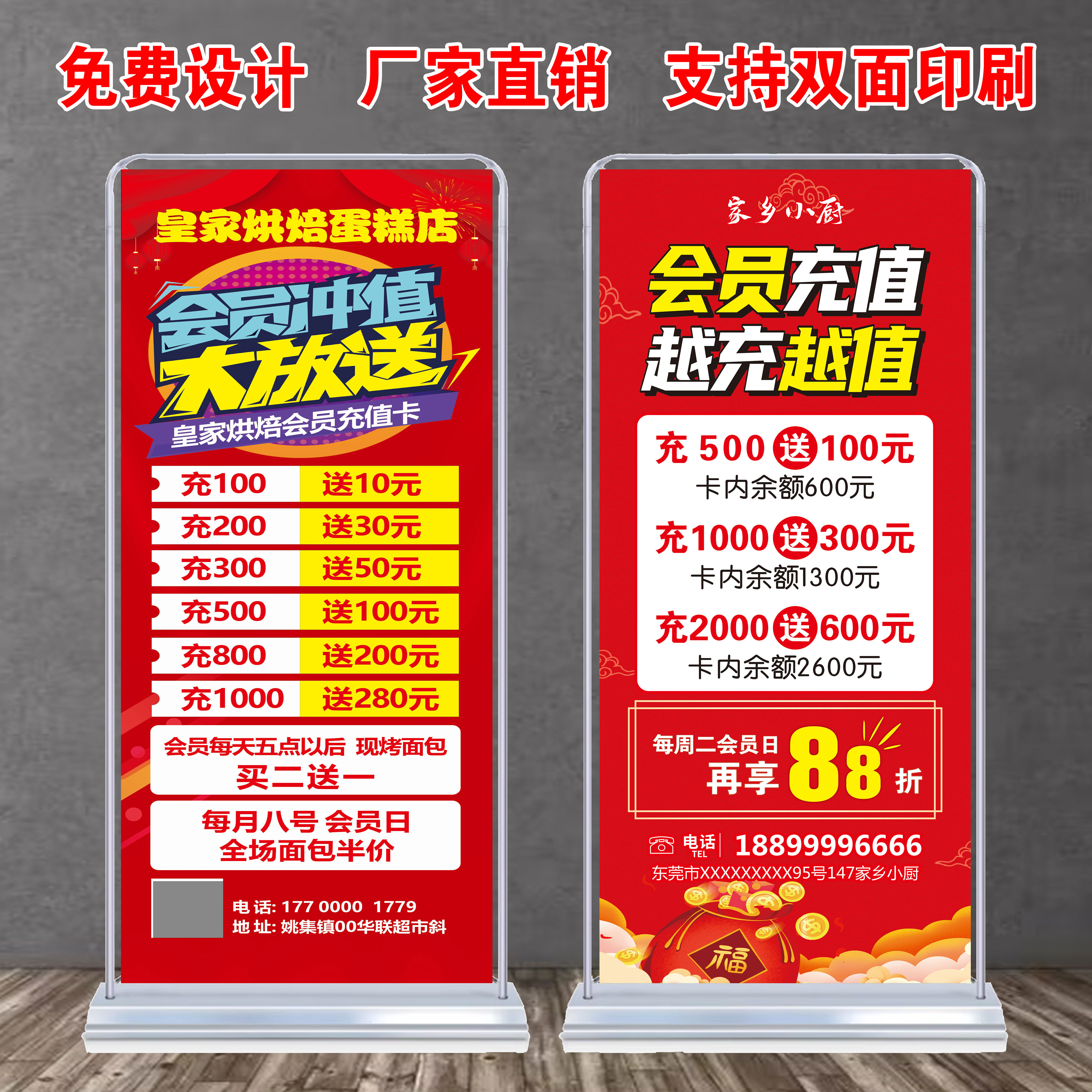 会员充值满减惠送优惠折扣活动宣传海报定制易拉宝x注水门型展架