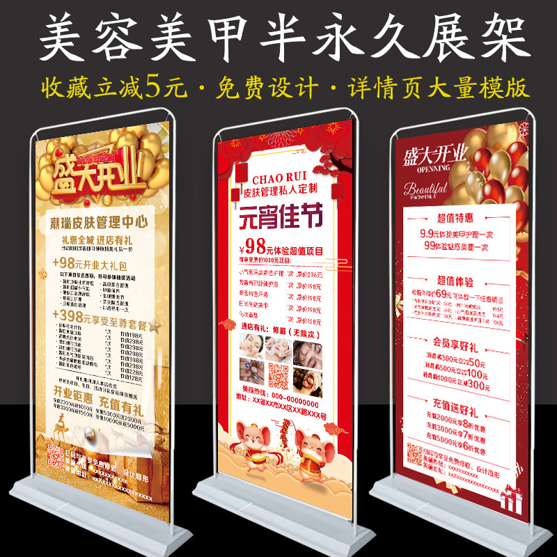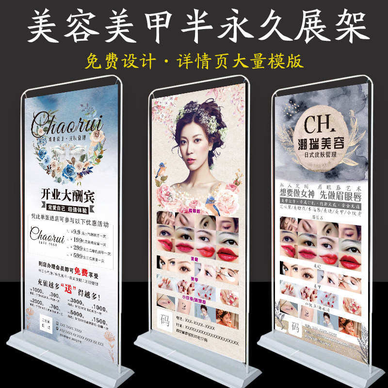 纹绣半永久眉眼唇美容美甲注水门型展架80x180海报开业广告易拉宝