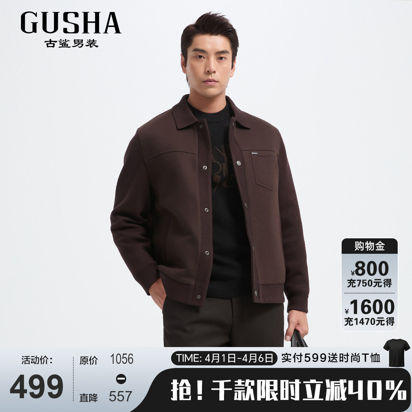 【含羽绒】古鲨棕色针织翻领毛呢男 高端商务修身外套2025冬装新