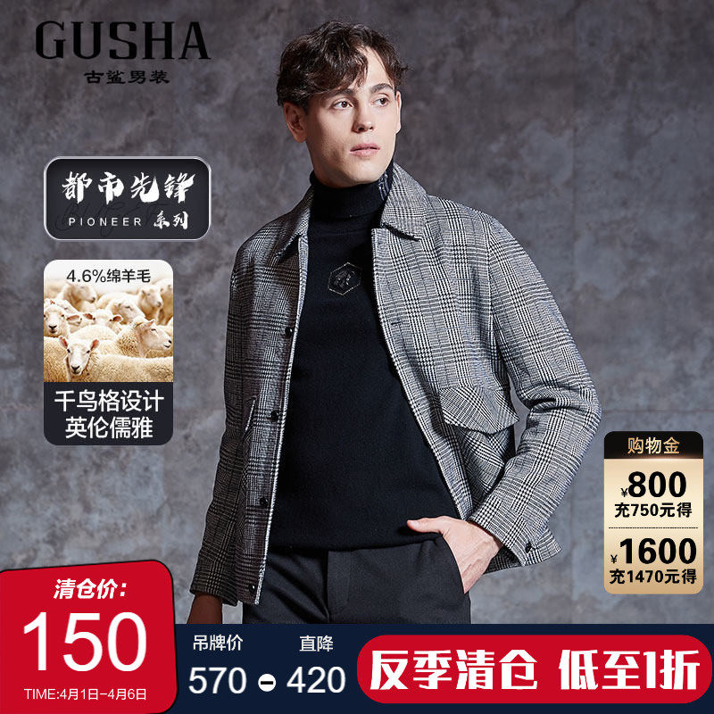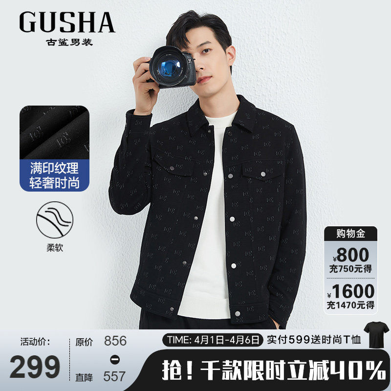 【软糯/时尚】古鲨黑色满印毛呢外套男 商务高端翻领夹克2025冬装