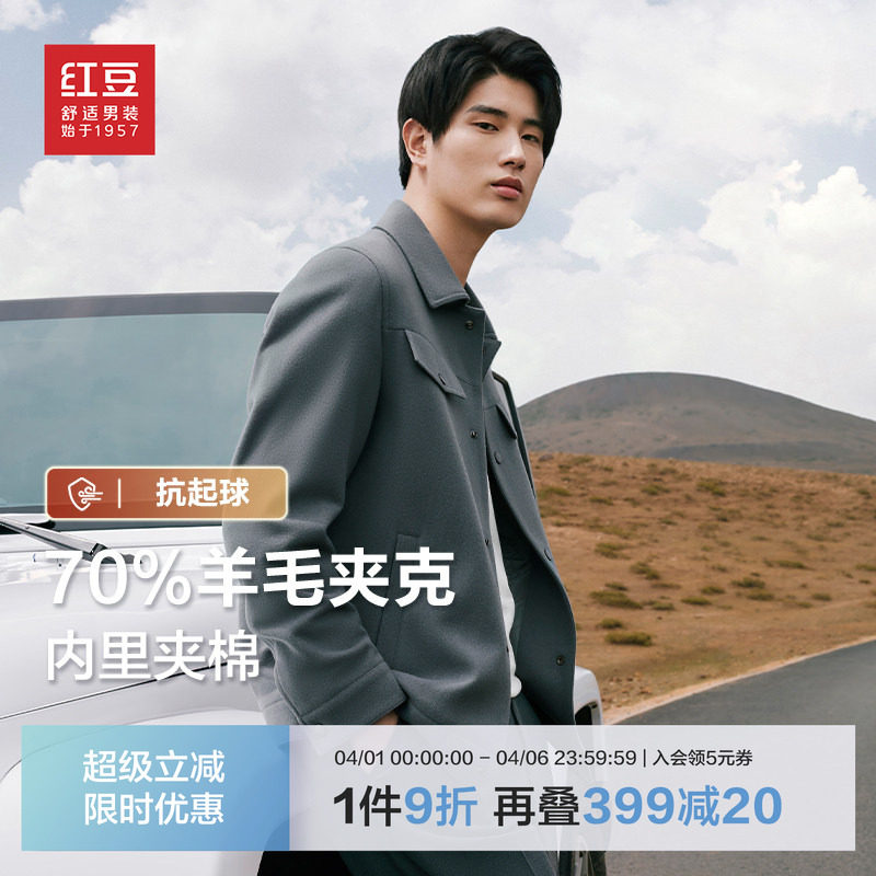 【70%羊毛棉夹克】红豆羊毛呢夹克男冬翻领工装夹棉保暖外套棉服