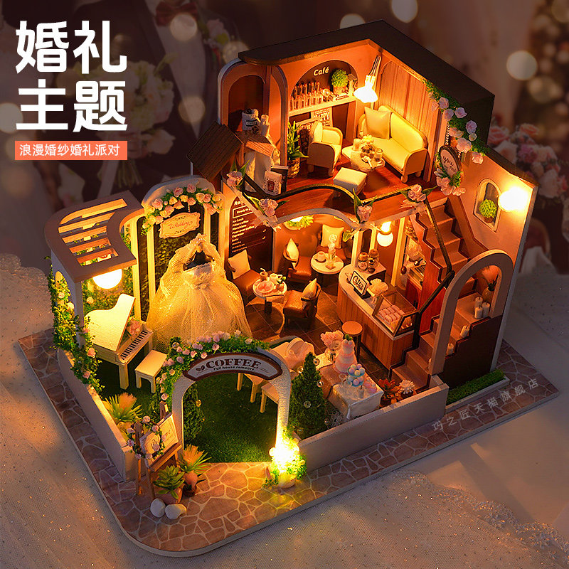 高档diy小屋啡屋生手工创意拼装房子咖模型礼别墅玩具情人节女生