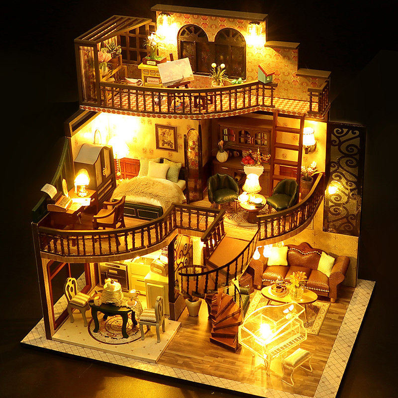 diy小屋阁楼别墅复古手工拼装房子模型微缩建筑玩具生日礼物女生
