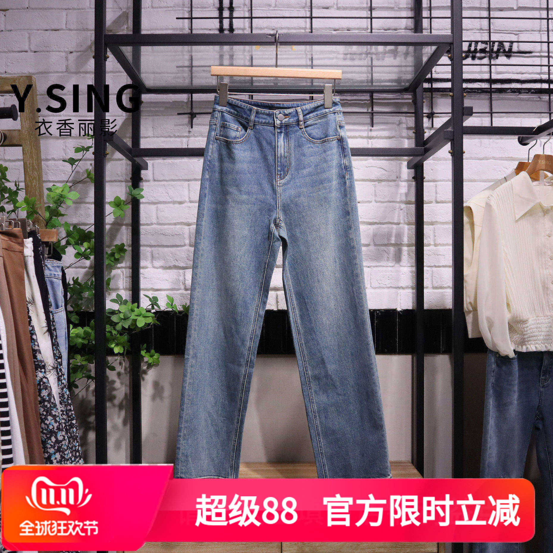 YSING衣香丽影2026夏季新款简约阔腿水洗牛仔裤150516802专柜正品