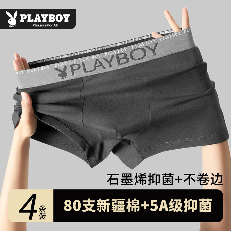 花花公子男士内裤纯棉猛男粉色内裤男生可爱四角短裤衩送男友礼物
