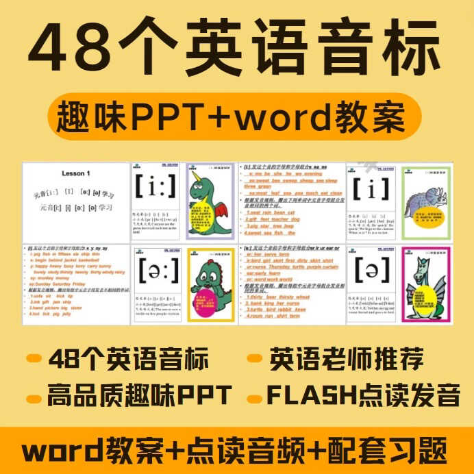 48个英语国际音标课件PPT 视频教程发音教学课程教案练习题电子版