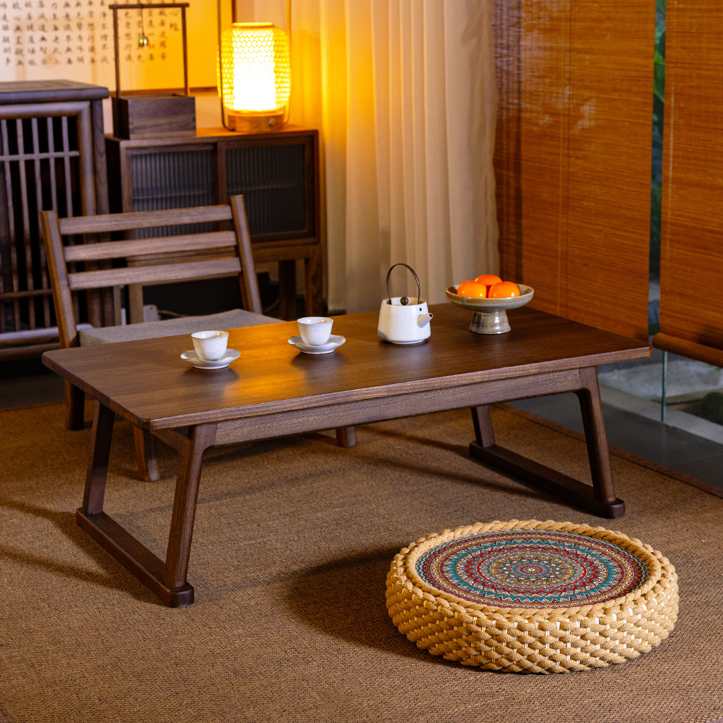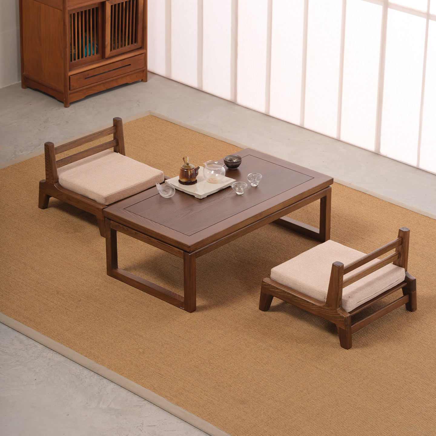 日式榻榻米茶几新中式实木炕桌阳台矮桌禅意茶桌椅组合榆木飘窗桌