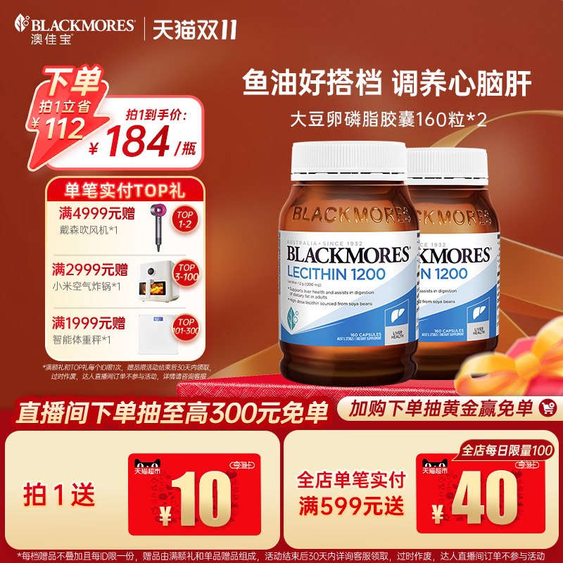 【立即抢购】澳佳宝大豆卵磷脂软胶囊软磷脂160粒*2保健官方进口