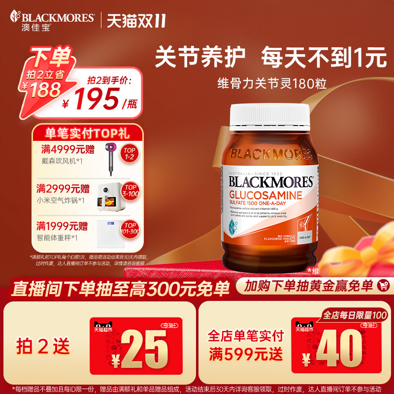 【自营】BLACKMORES澳佳宝氨糖软骨素维骨力关节灵软骨180粒*2