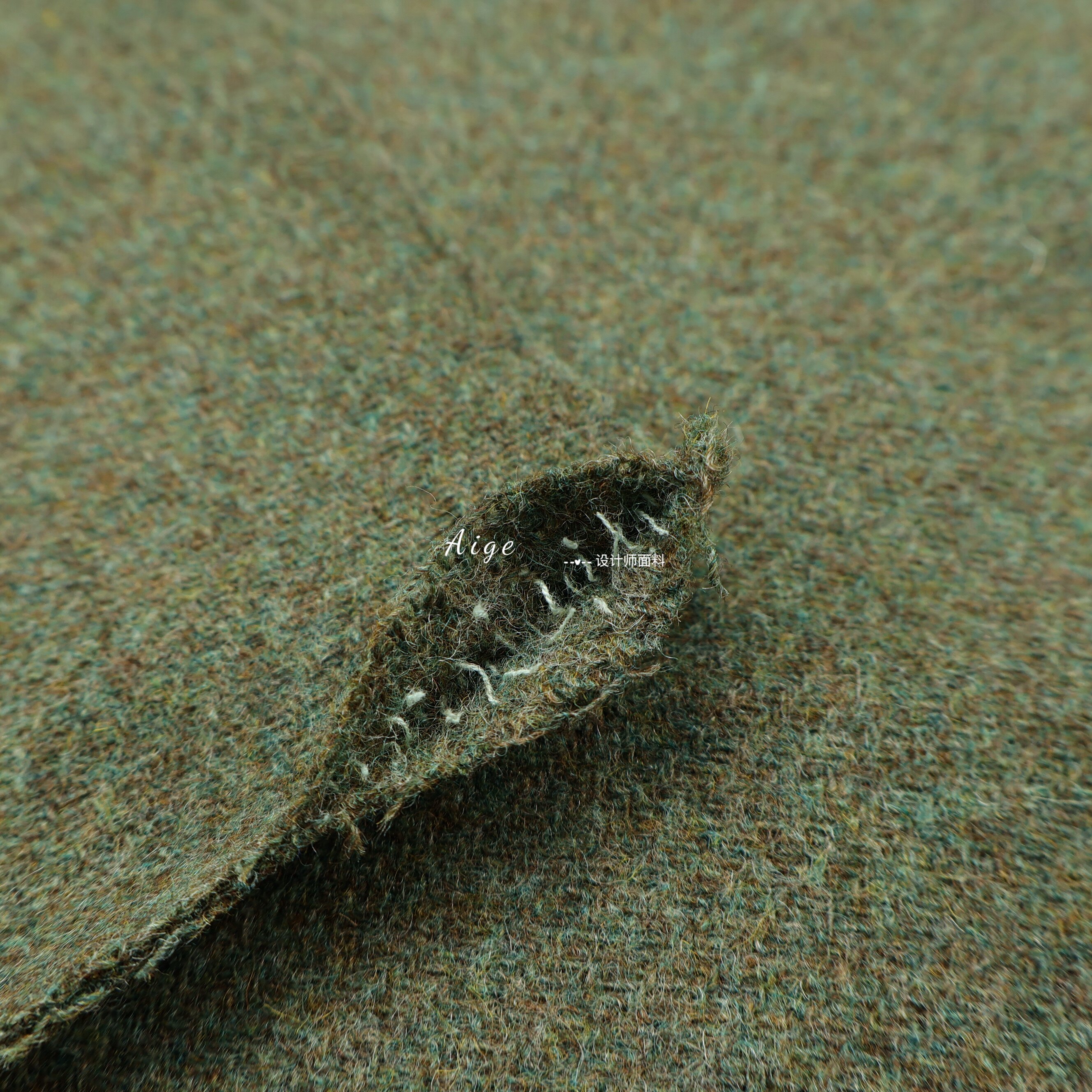 100%羊毛 进口绿色混色彩纱双面毛呢毛料面料大衣外套马甲布料DIY