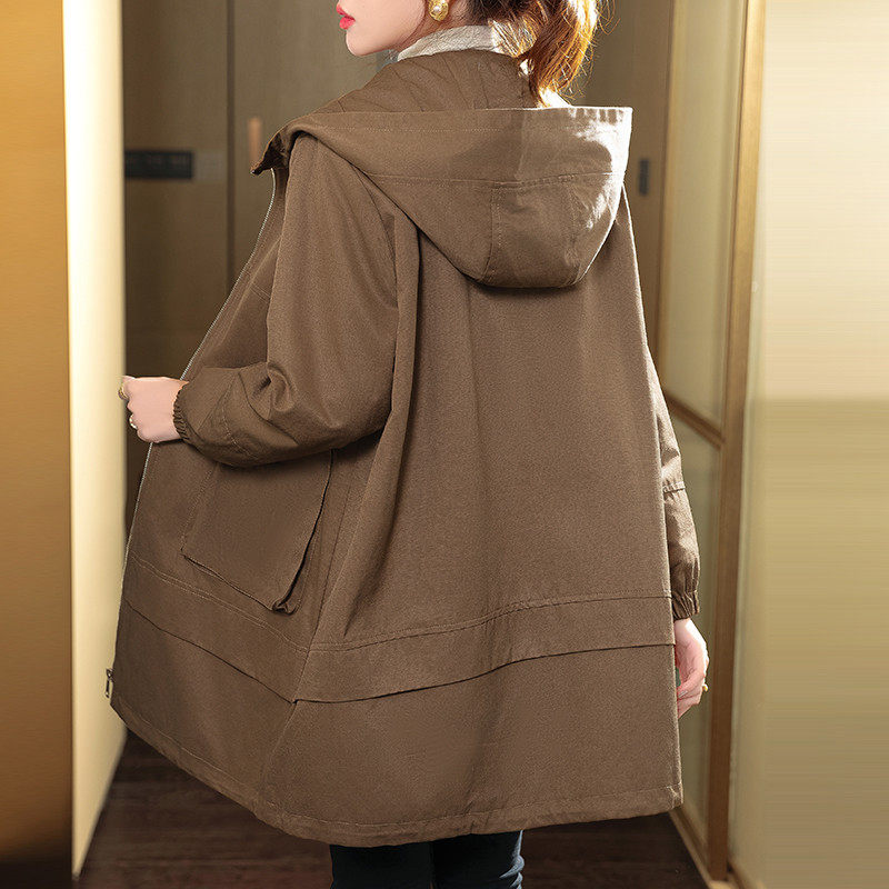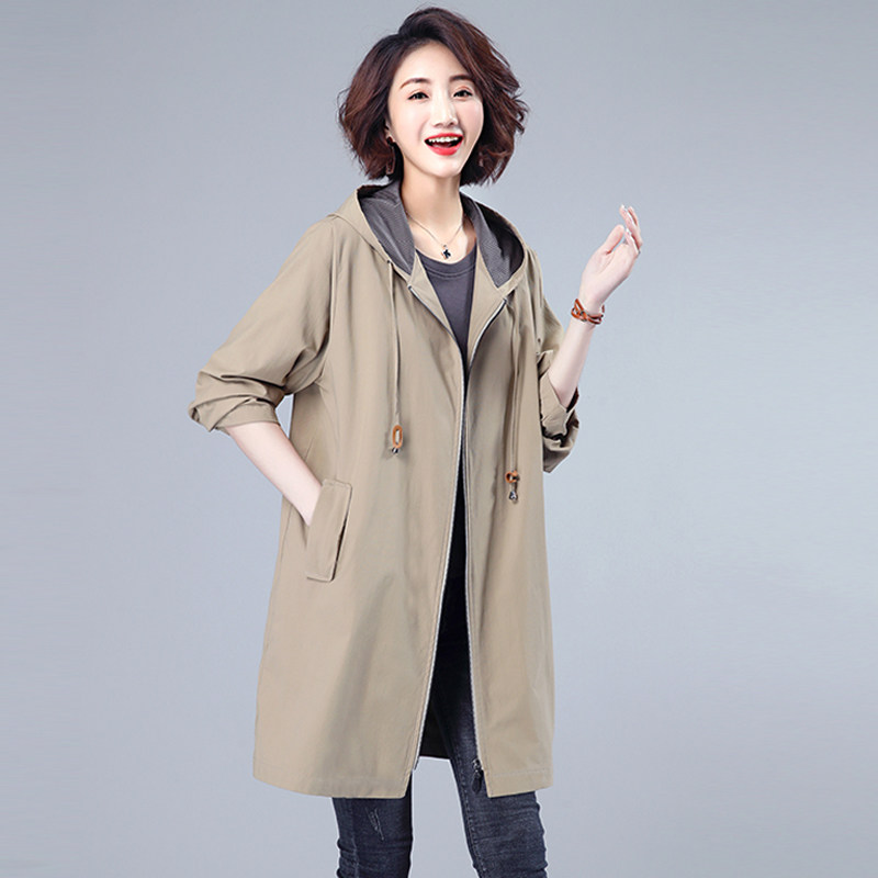 女士风衣中长款宽松连帽2025年春秋新款中年妈妈韩版休闲时尚外套