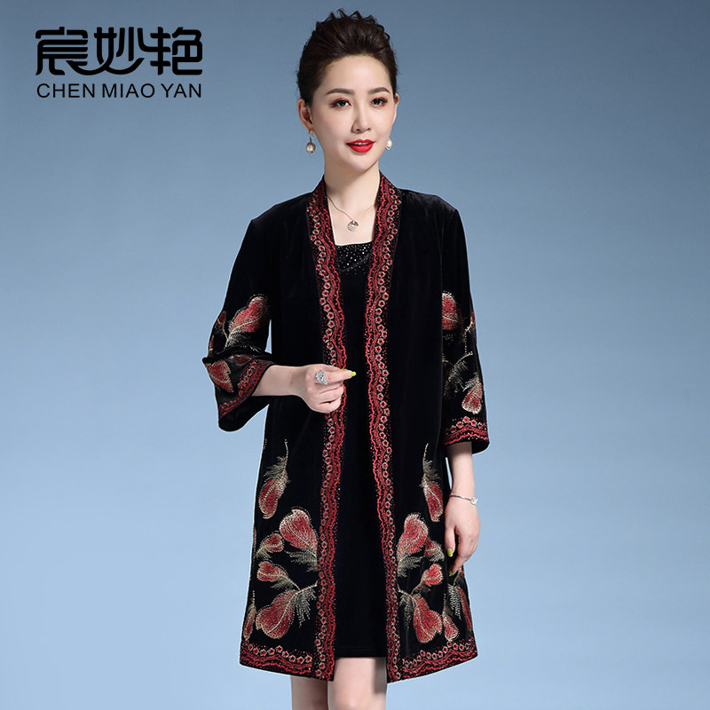 妈妈装秋装2024新款中老年女装金丝绒外套高贵中年女士风衣中长款