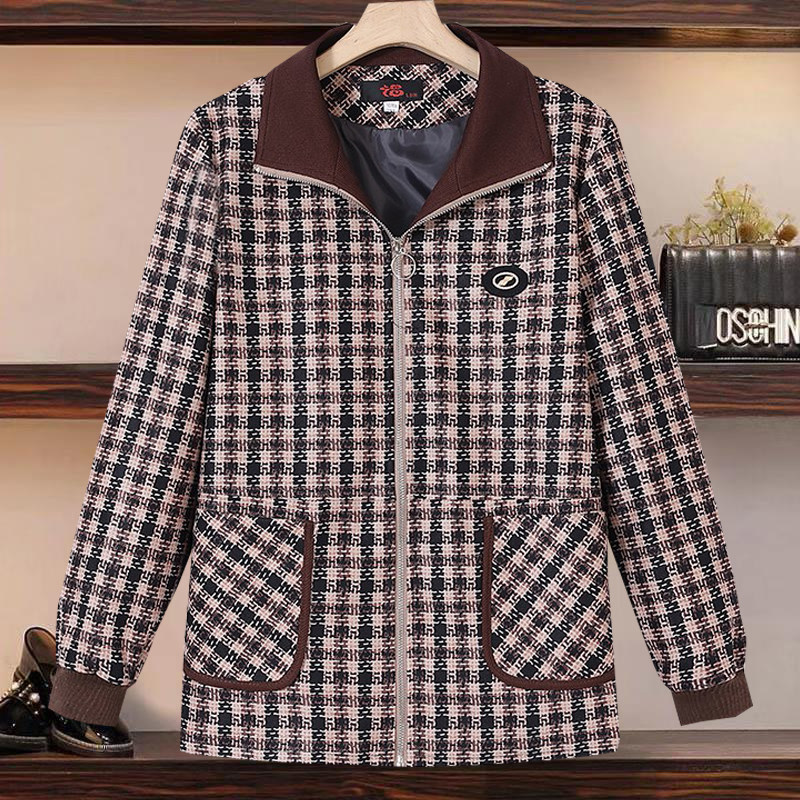 秋季夹克衫春秋装翻领格子时尚女士风衣中长款50岁妈妈遮肚子外套