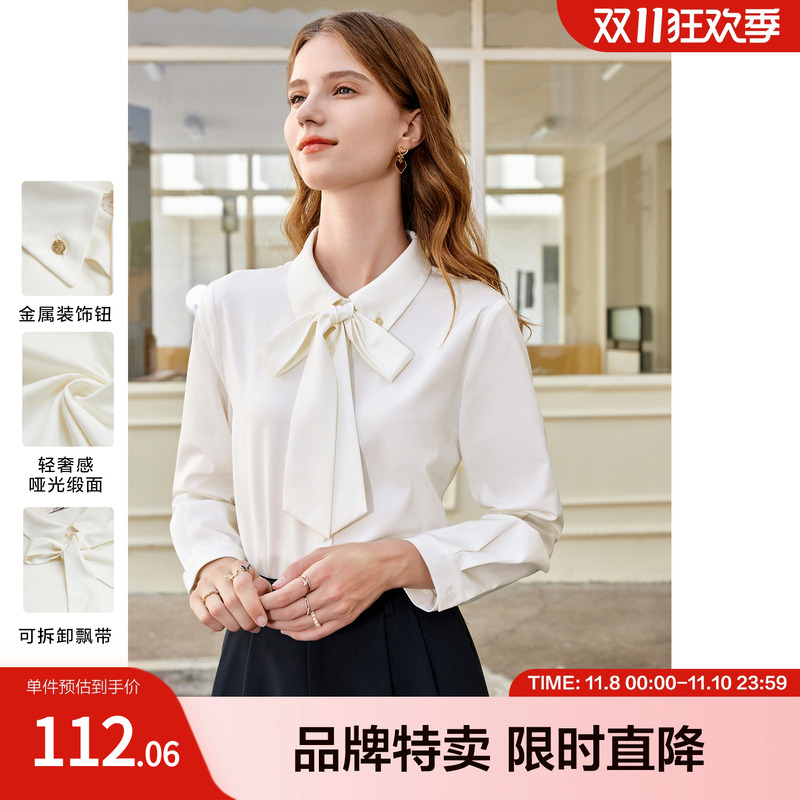 OVVOutlet秋冬热卖女装醋酸混纺优雅飘带大气长袖休闲衬衫