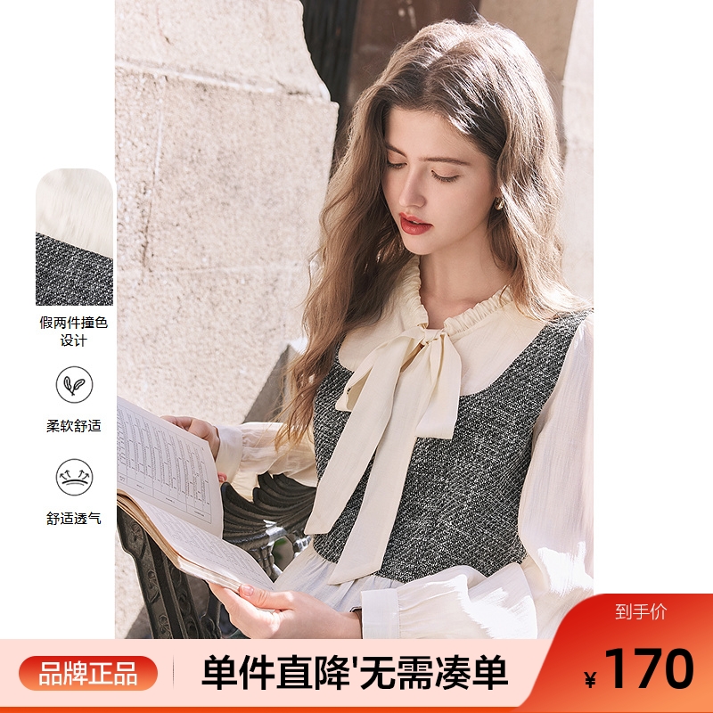 - 假两件衬衫 女 长袖 韩版