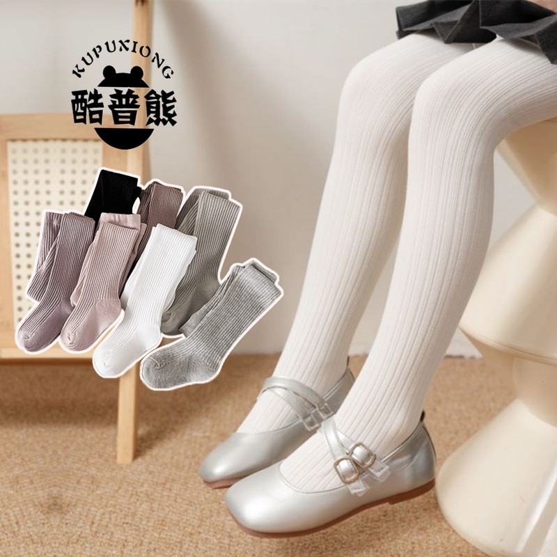 女童打底裤春秋款中厚纯棉连裤袜中大童白色舞蹈袜防滑宝宝连体袜