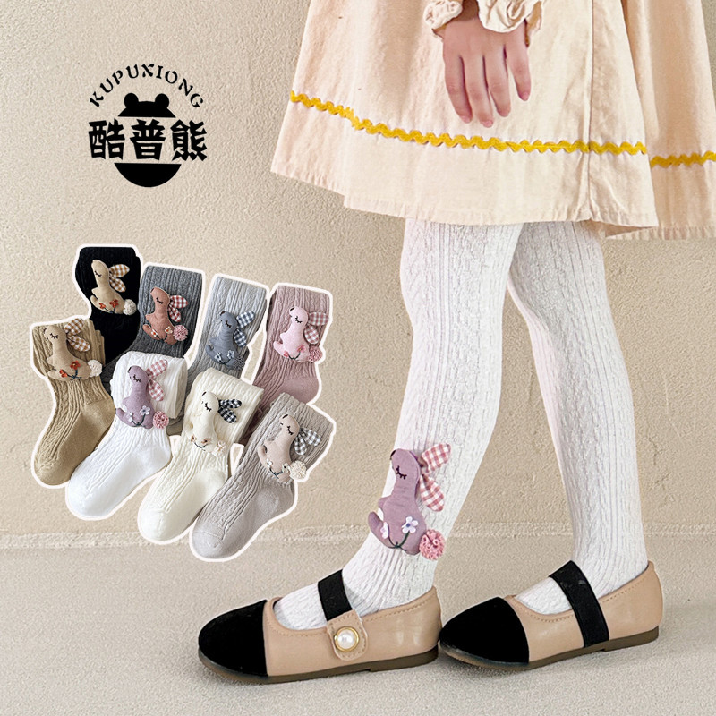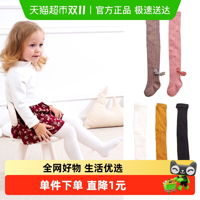 乖奇熊女宝宝白色连裤袜大pp春秋季可爱连体袜婴儿童打底裤袜秋冬