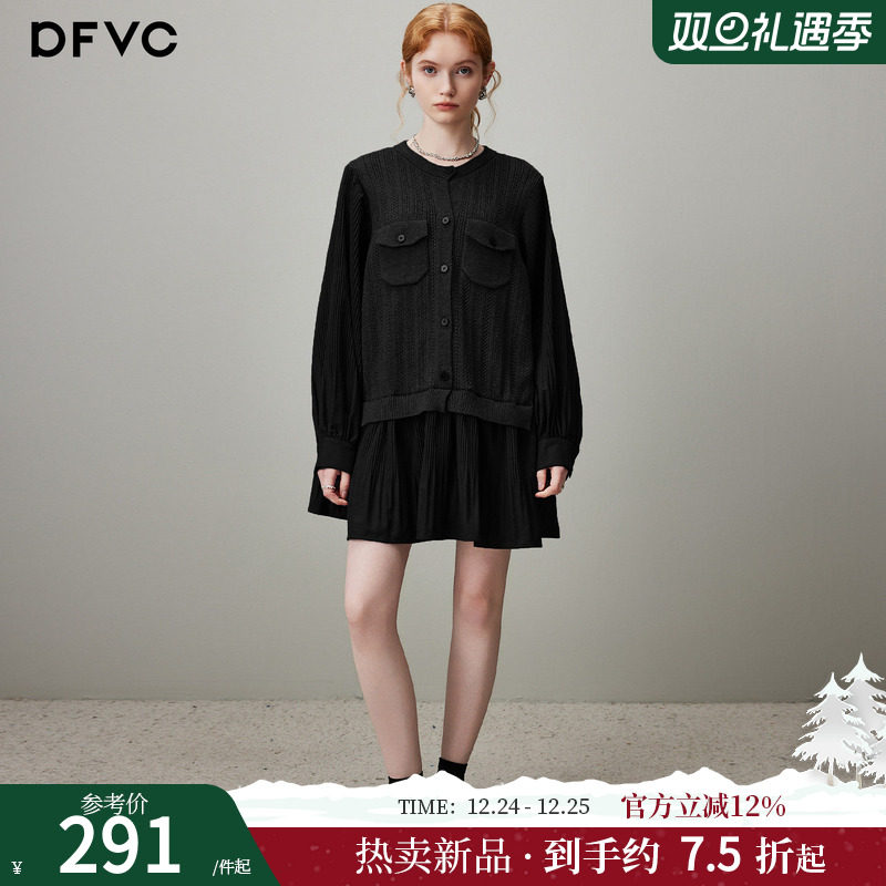 dfvc黑色假两件拼接针织连衣裙女2025年冬季新款宽松打底毛衣裙子