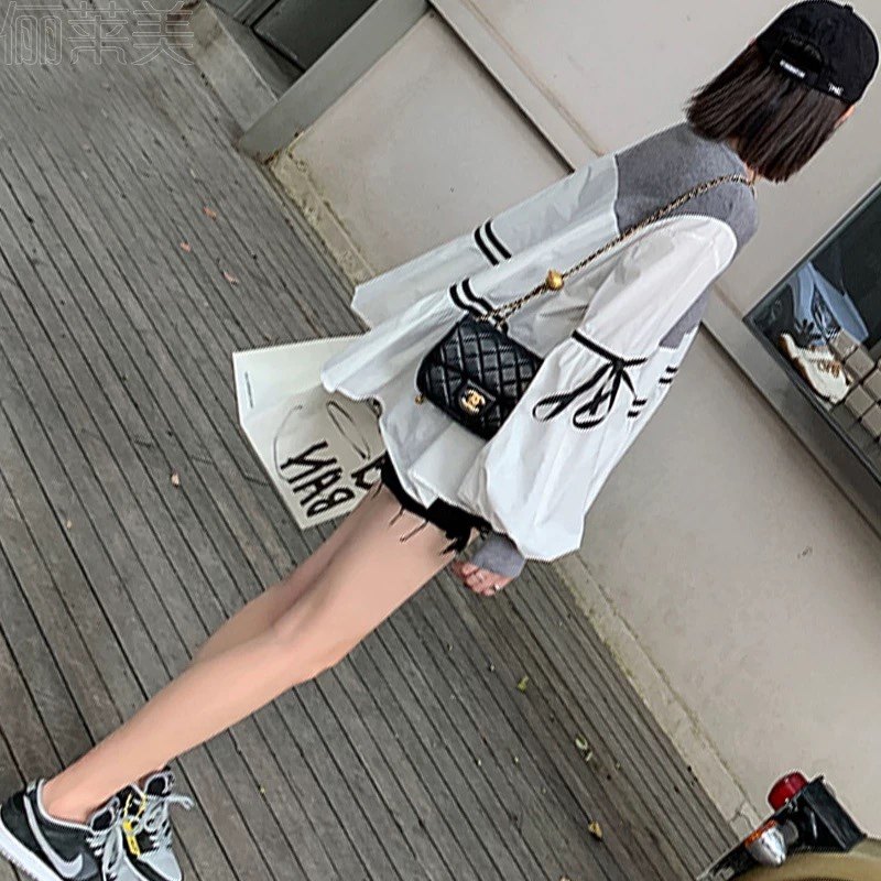 咖色韩系木耳花边拼接背心连衣裙女春秋新款长袖打底衫套装配小包