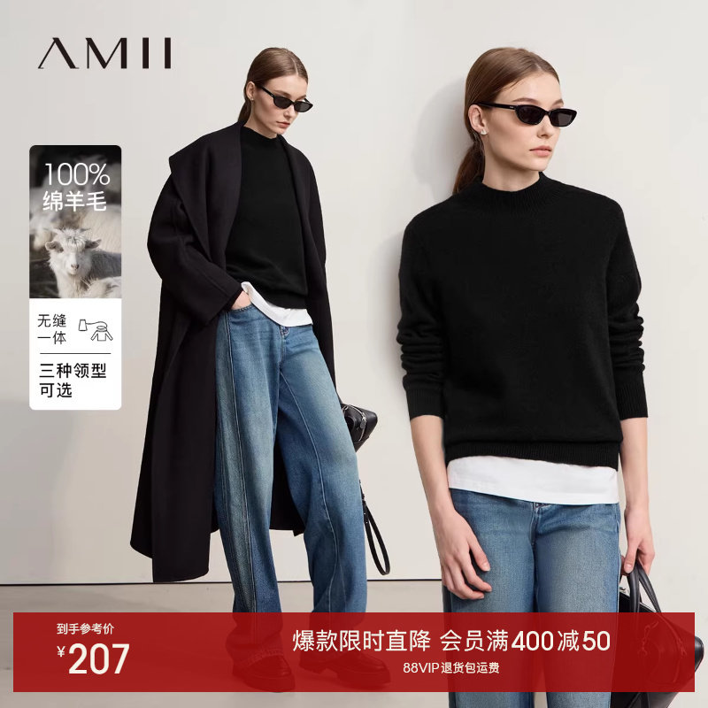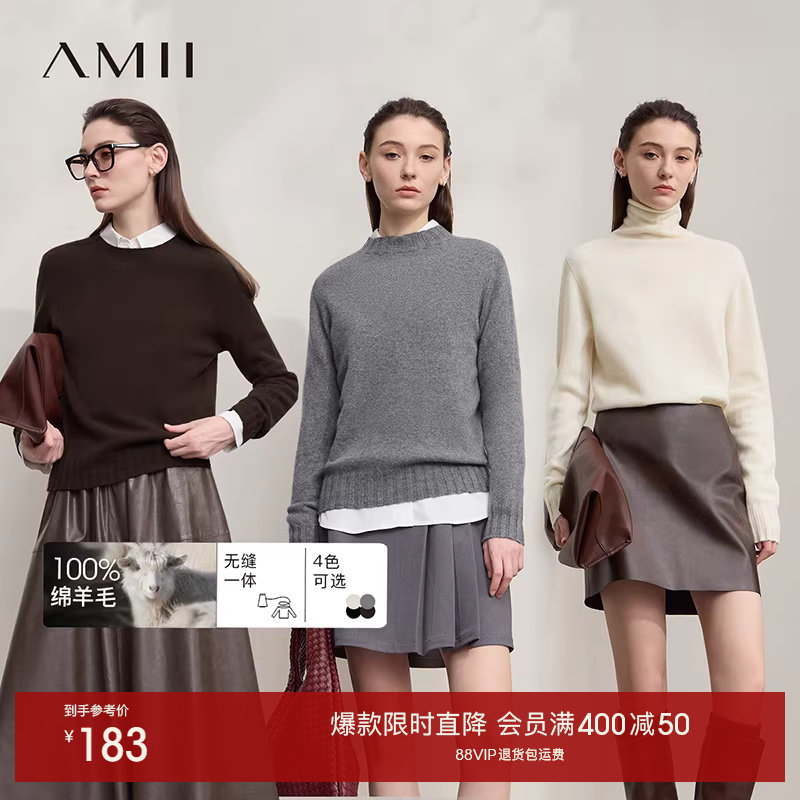 Amii【羊绒绵羊毛羊毛衫】2025秋冬无缝一体成型毛衣秋冬季女上衣