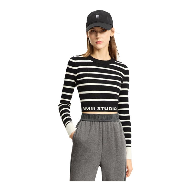 - 短款条纹针织衫