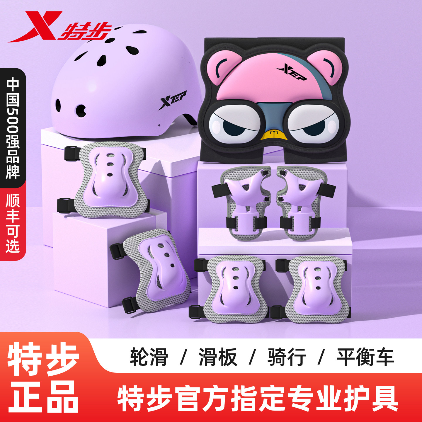 特步轮滑护具护膝儿童护肘防摔骑行专业防护滑板自行车平衡车头盔