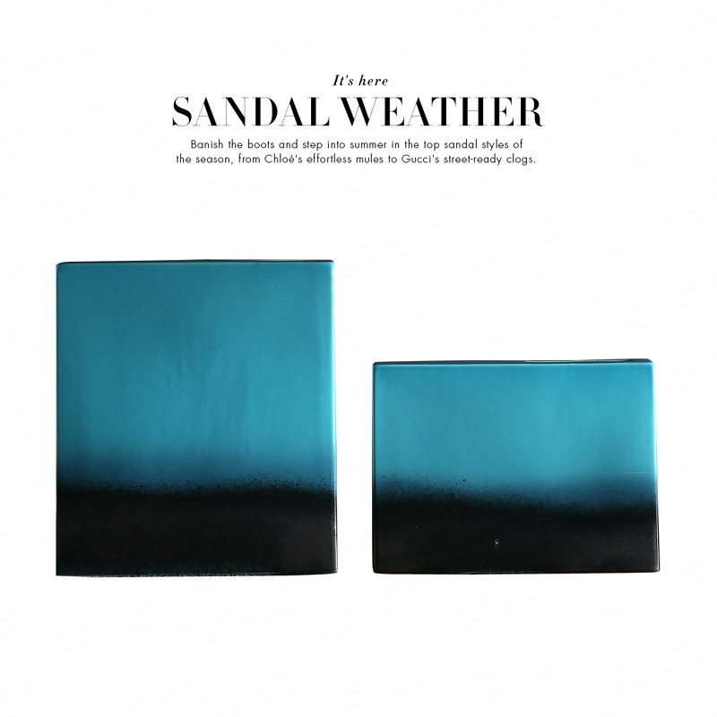 地中海陶瓷花瓶摆件现代客厅干花花器蓝色扁花瓶软装饰品方盒花插