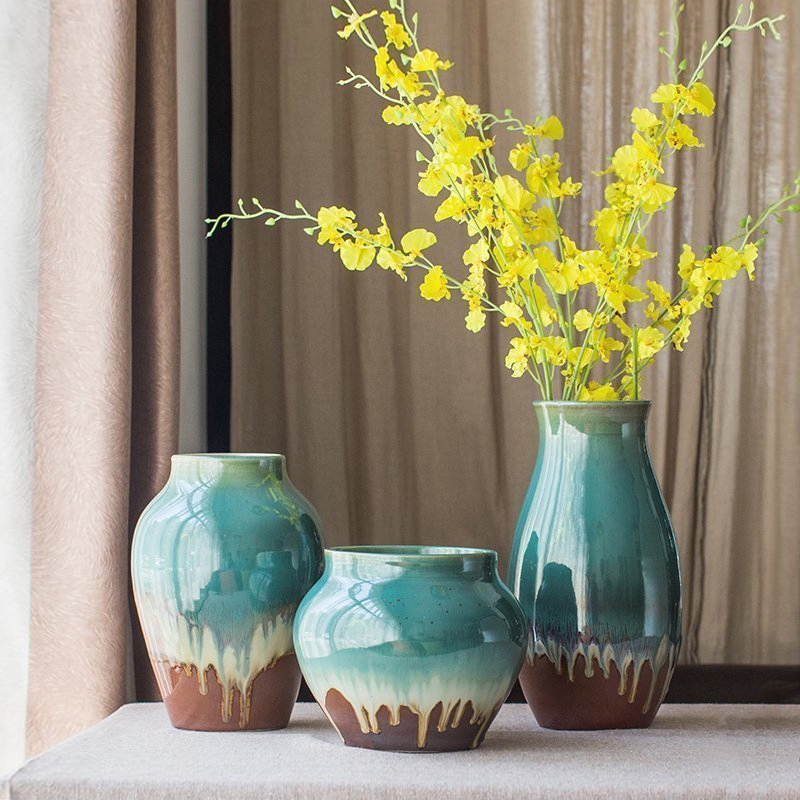 美式欧式古典地中海做旧胖罐陶瓷客餐厅桌面花瓶花器装饰工艺摆件
