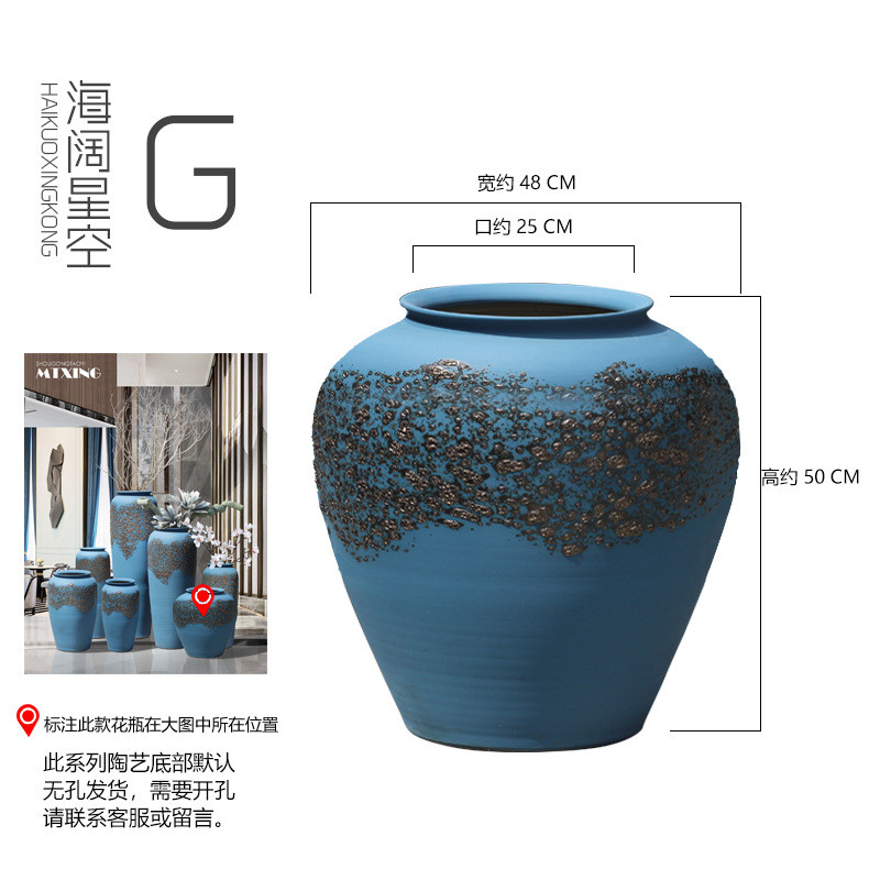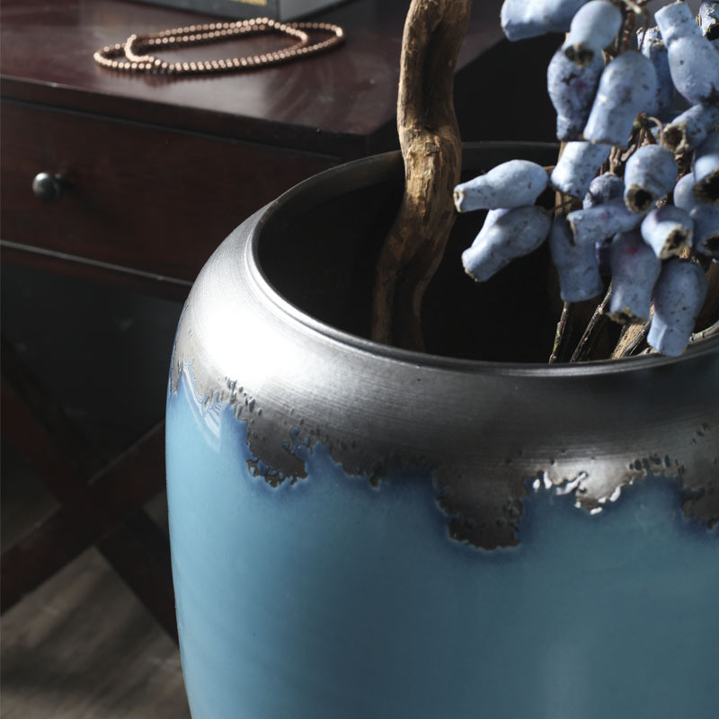 地中海时尚蓝色复古落地大花瓶干支陶罐软装会所别墅摆件酒店饰品