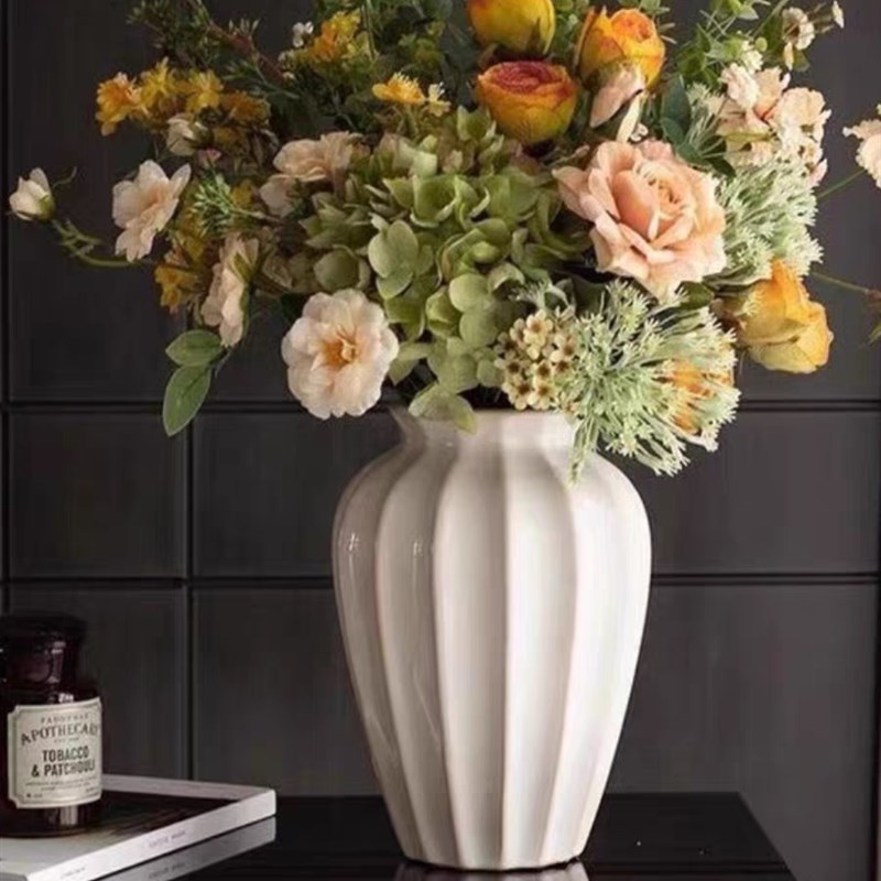 复古简约风地中海花瓶竖纹大肚陶瓷插花瓶电视柜客厅餐桌装饰摆件