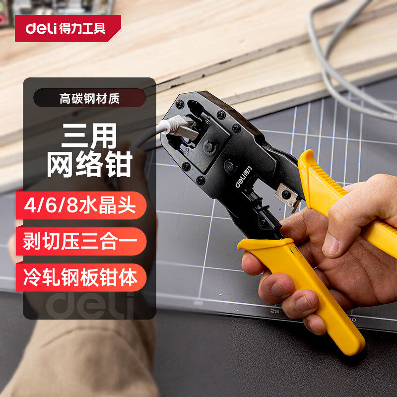 得力端子网线钳水晶头多功能压线钳冷压电工连接器快速手动铜鼻子