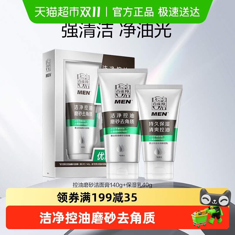 男士控油磨砂洁面膏护肤套装正品(洁面膏140g+保湿乳40g )