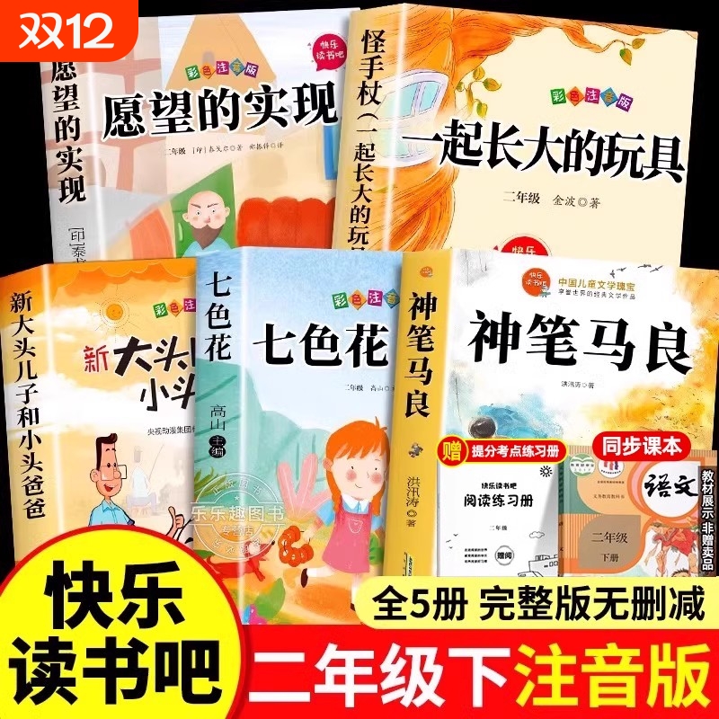 全套5册神笔马良二年级下册课外书必读快乐读书吧二下老师推荐阅读正版注音版一起长大的玩具七色花卡达耶夫愿望的实现配人教版2下