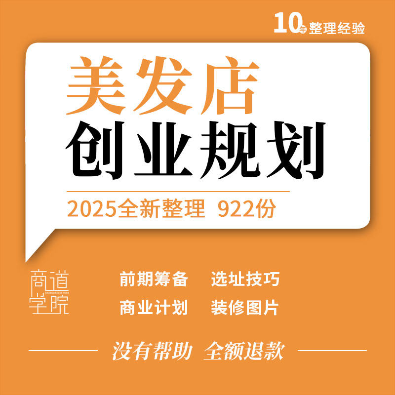 理发美发店发廊前期筹备投资预算物品清单选址技巧创业商业计划书