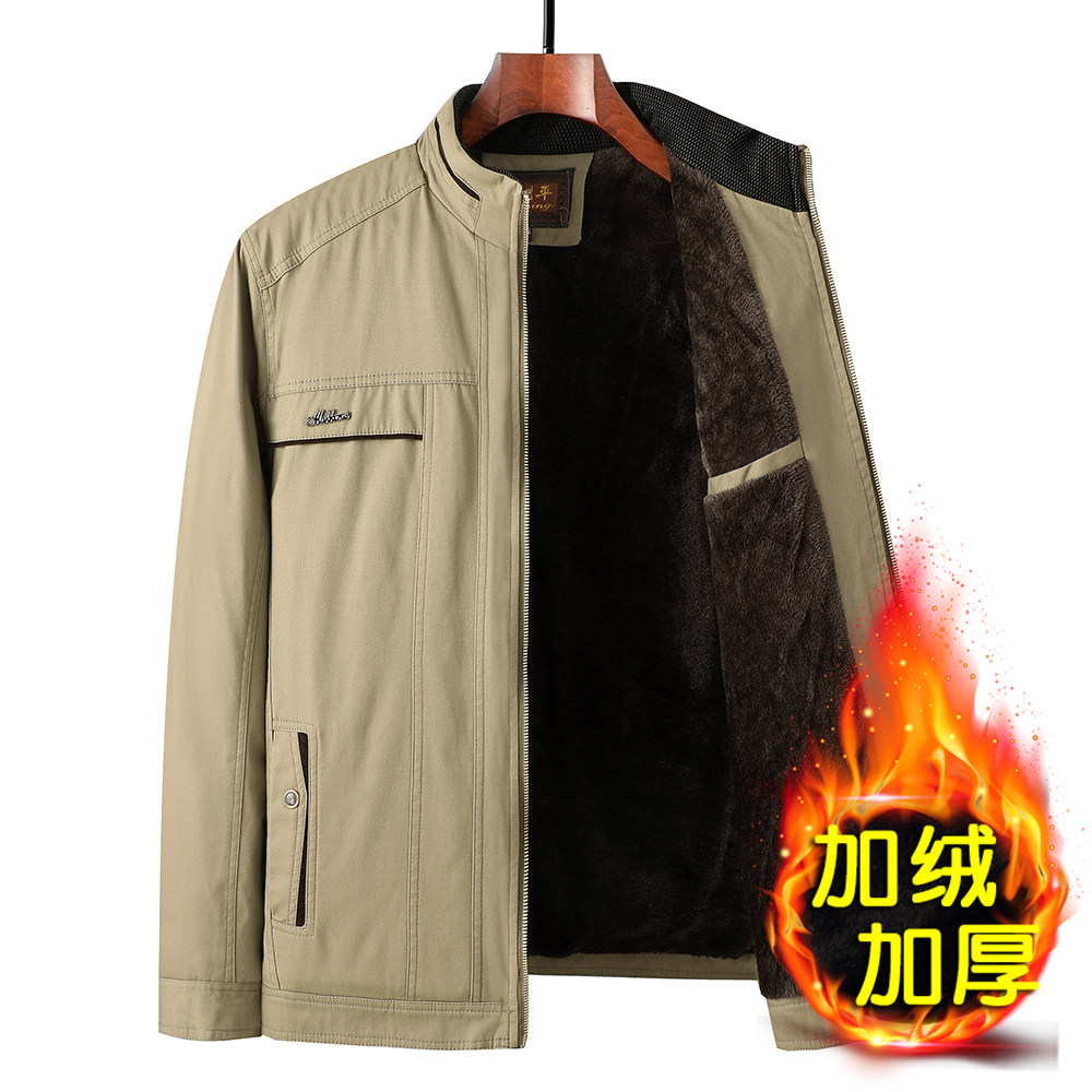 中年男冬季纯棉夹克爸爸装加绒加厚棉衣中老年立领宽松外套老人衣