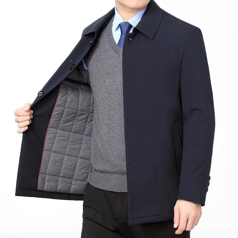 士中年男冬季外套服加棉加厚中长款9985爸爸棉衣翻领加厚外薄款棉