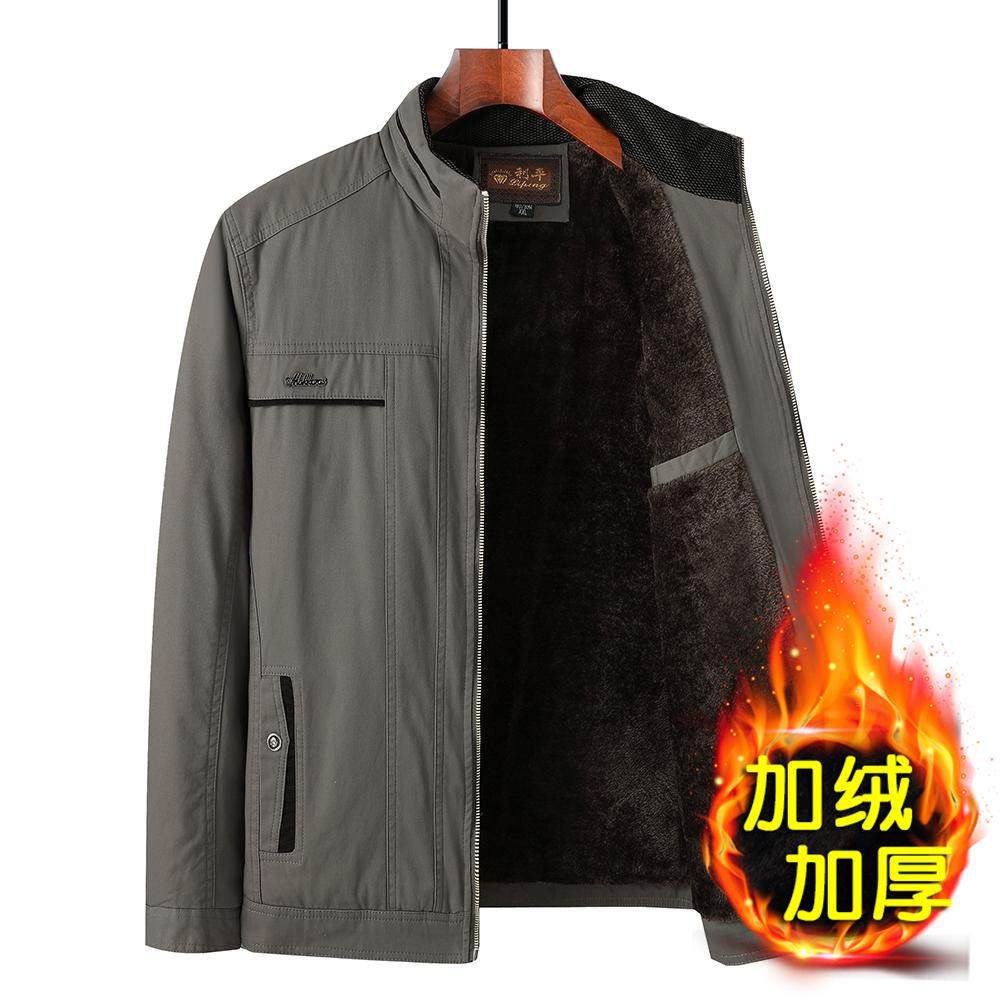 爸爸装加绒加厚纯棉夹克衫中年男冬季立领外套中老年棉衣老人衣服