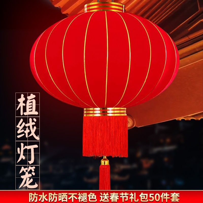 大红植绒灯笼户外防水大灯笼 大门口灯笼挂饰过新年 节日装饰灯笼
