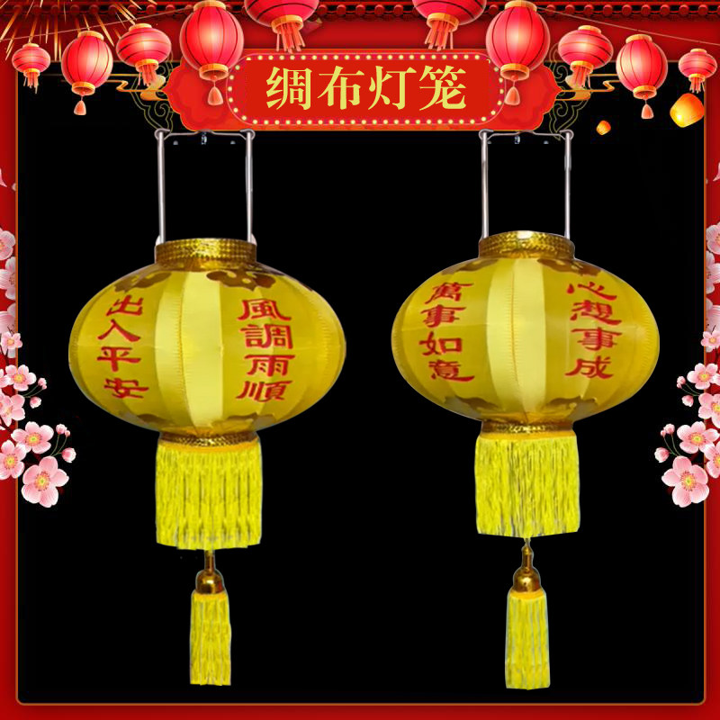 风调雨顺绸布黄灯笼节日寺庙佛堂禅意吊灯心想事成新年防水大灯笼