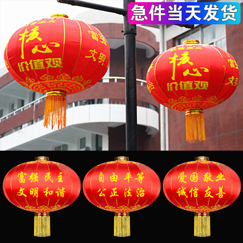 核心价值观灯笼国庆大红灯笼户外防水绸布广告灯笼定做福字大灯笼