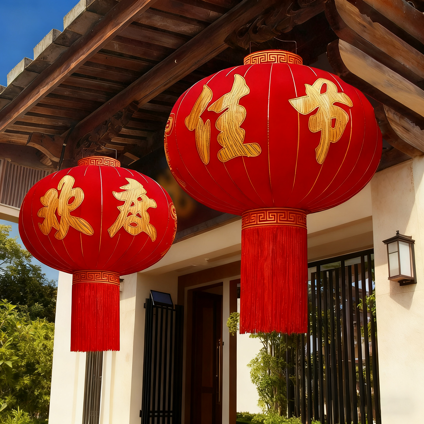 植绒大灯笼新款2026农村自建房大门口一对挂饰新年装饰户外过年