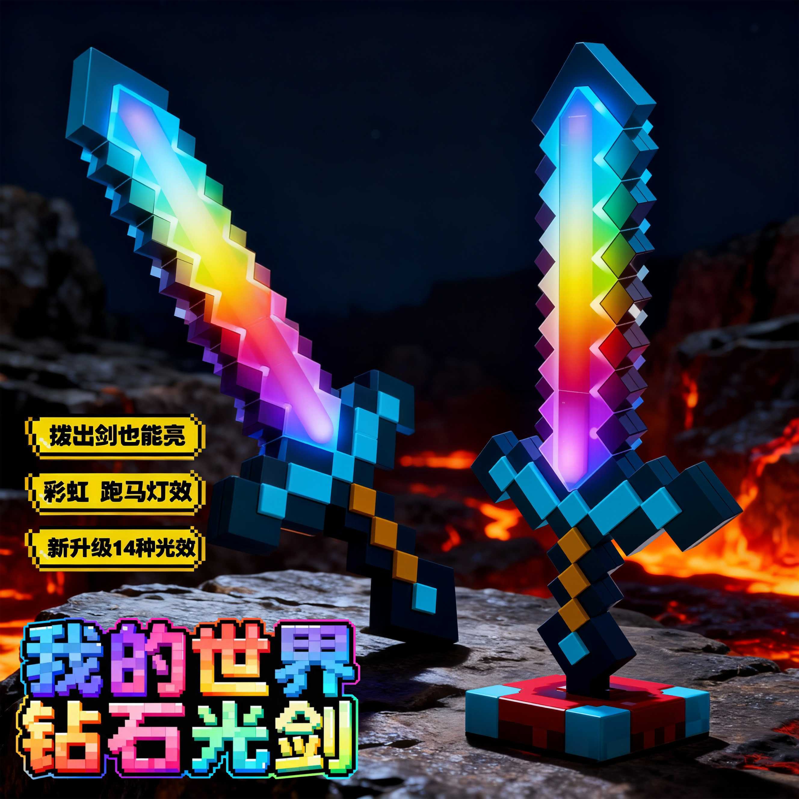 我的世界钻石剑七色发光小夜灯摆件mc周边手办玩具武器模型火把灯