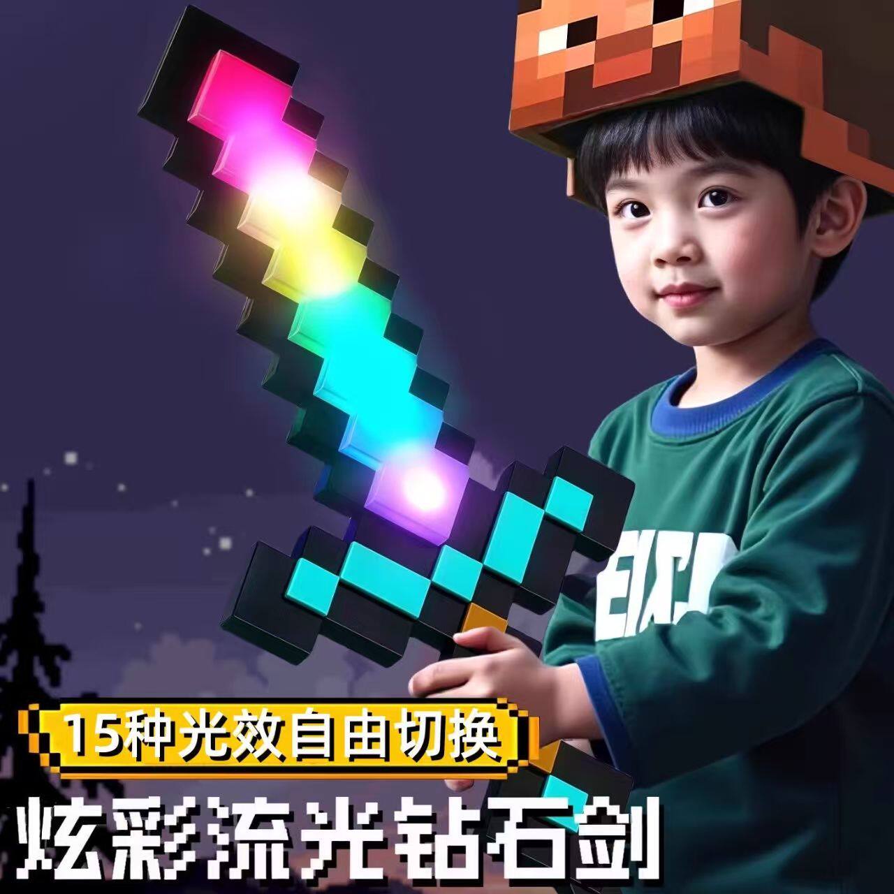 我的世界钻石剑像素光剑MC宝剑周边儿童发光玩具武器男孩子火把灯