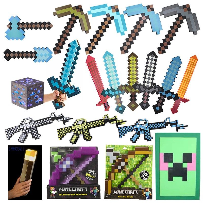 我的世界钻石剑镐武器道具泡沫玩具模型弓箭玩具周边盾牌火炬男孩
