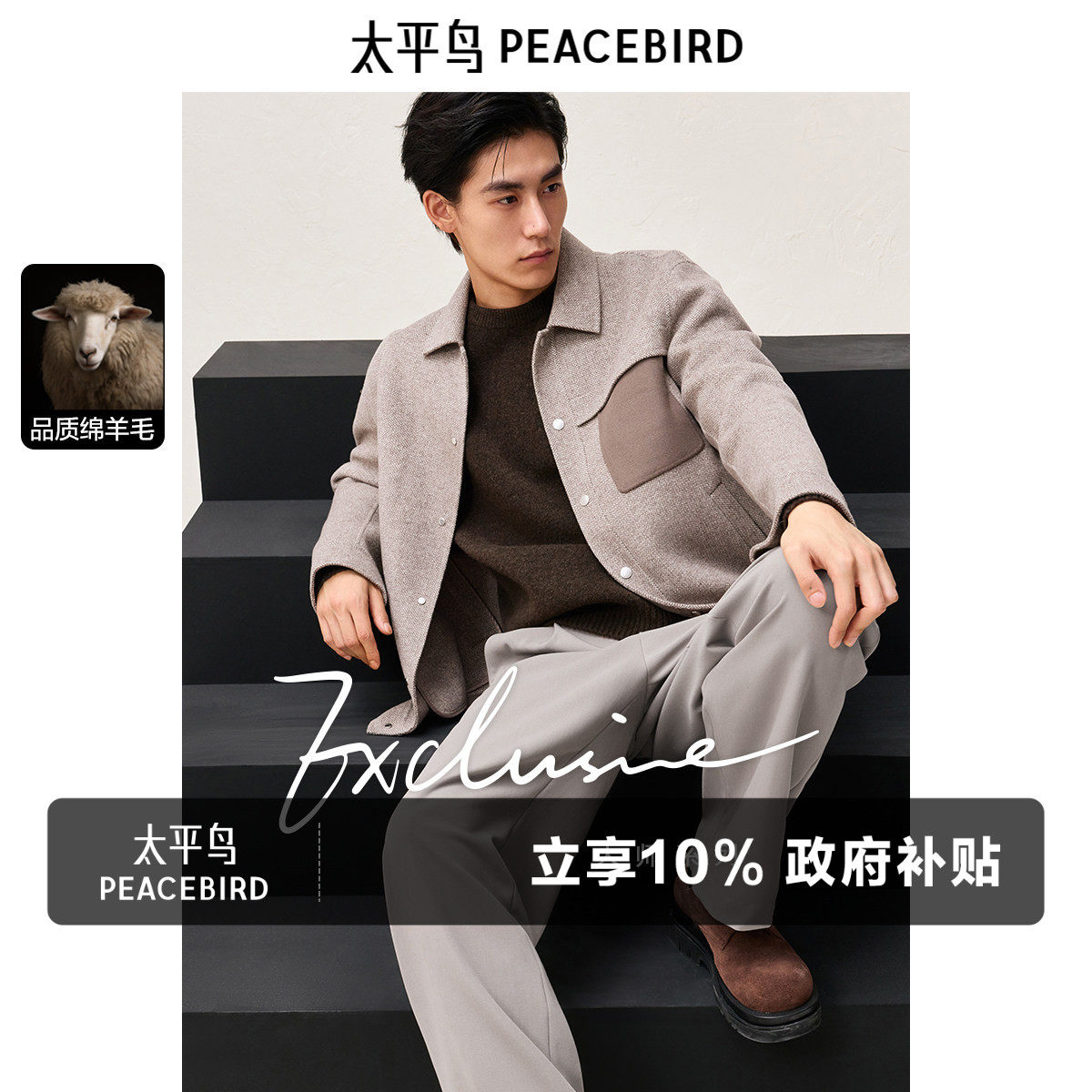 太平鸟男装 毛呢外套男冬季双排扣西装保暖羊毛短款大衣通勤上衣